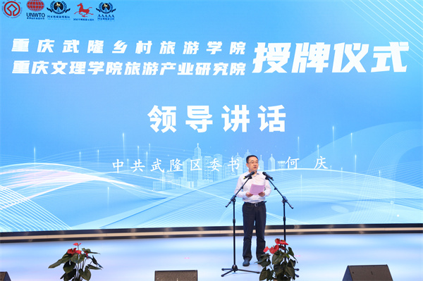 武隆区区委书记何庆在致辞中表示,武隆区正纵深推进以国际化为引领的武隆旅游“三次创业”,全力打造成渝地区双城经济圈“文旅主力店”、旅游带动共同富裕的武隆样本、惠民有感的高品质生活示范区。重庆武隆乡村旅游学院、重庆文理学院旅游产业研究院的落地,将进一步促进高端人才聚集、产业提质发展、区域创新能力提升,实现优势互补、资源共享、共同发展。希望校地双方加强组织领导、健全工作机制,清单化、闭环式推进校地合作各项工作,确保年年有新进展、新气象、新成效。
