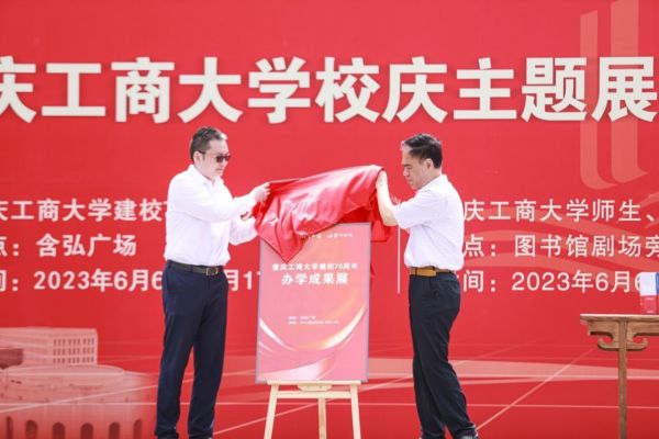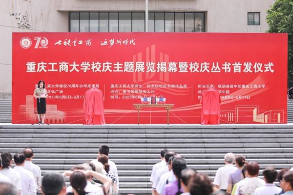 6月6日上午11点,重庆工商大学在学校含弘广场隆重举行“七秩重工商 逐梦新时代”校庆主题展览揭幕暨校庆丛书首发仪式。学校党委书记李志雄,校长温涛,党委副书记宋豫,党委常委、副校长陈运超、张波、李国军、赵骅等出席仪式。原重庆商学院党委书记张柏村,原渝州大学校长戴宏民,原重庆工商大学党委书记周希贤,原重庆工商大学校长王崇举,原重庆工商大学副校长廖元和、黄朗和离退休教职工代表受邀参加仪式。此外,学校各二级单位负责人、教职工代表、校友代表和学生代表也参加了仪式。仪式由宋豫主持。