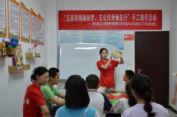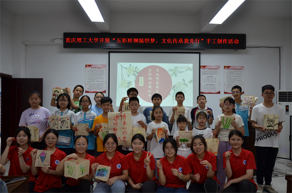 为弘扬和传承中华传统文化,助力社会主义文化强国建设,7月2日,重庆理工大学“青春有‘理’,梦想有家”社会实践团来到重庆市江津区鼎山街道滨江社区“青少年之家”开展“五彩斑斓编织梦,文化传承我先行”手工制作活动。此次活动由20名实践团成员组织开展,滨江社区近30名青少年和家长共同参加。