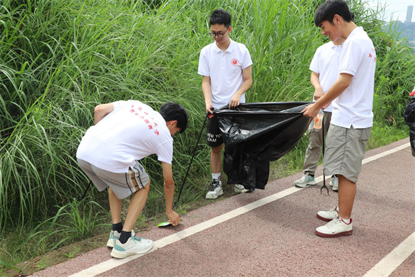 二十大报告指出,加快发展方式绿色转型,推动经济社会发展绿色化、低碳化是实现高质量发展的关键环节。绿色发展与生态文明建设是国家从战略和全局高度作出的重大决策部署,是全面建设社会主义现代化国家的关键之举。为实现“双碳”目标,助力绿色发展,重庆理工大学管理学院“青年追梦”社会实践团于7月4日下午,赴重庆市巴南区巴滨路沿河边开展“绿色发展始于心,江河保护践于行”环保活动。