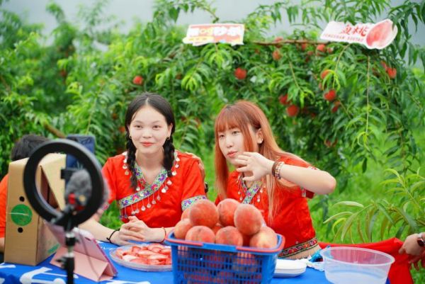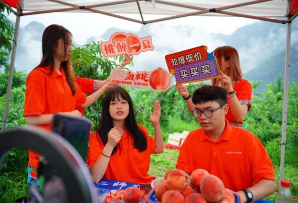 2023年7月7日上午,重庆第二师范学院经济与工商管理学院“经世济民,电商助农”实践团赴重庆市黔江区白石镇凤山村“血桃基地”,了解乡村振兴下农业发展现状。在“血桃大王”王毅的带领下,由指导老师王帅、刘欣、李星瑶、苟枥文及8名实践团成员共同进行“经心助‘桃’出深山,电商伴‘黔’行万里”凤山血桃直播活动。