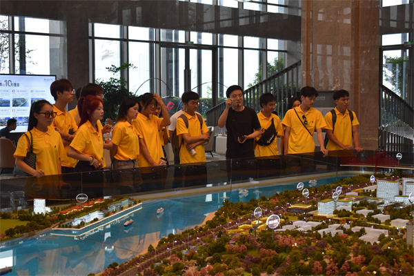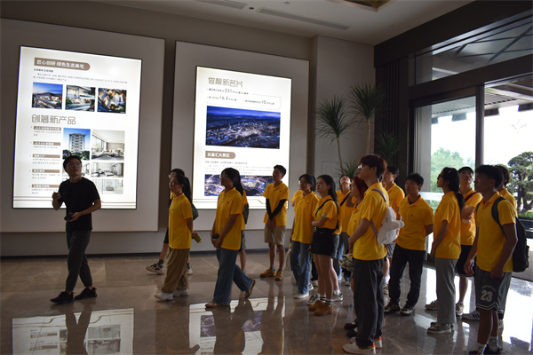 活动现场,项目设计经理冯宇麟着重向实践团成员介绍了长嘉外滩的整体概况:该项目坐落于两江四岸核心区的弹子石板块,是重庆国瑞控股集团斥资100亿元重点打造的地标级城市综合体。长嘉外滩项目是集“绿色建筑、生态建筑、智慧建筑、装配式建筑”四建标准,按照绿色建筑二星标准打造,是真正意义上的绿色健康人居范本。随后,冯经理带领同学们深入工地现场、示范展示区和装修样板间等地,从人性设计、健康选材、工厂生产、施工组装、定期保养、智慧服务等六个专业维度为实践团成员们带来了一堂意义非凡的专业实践讲授。