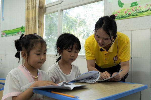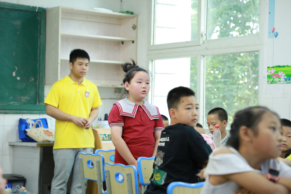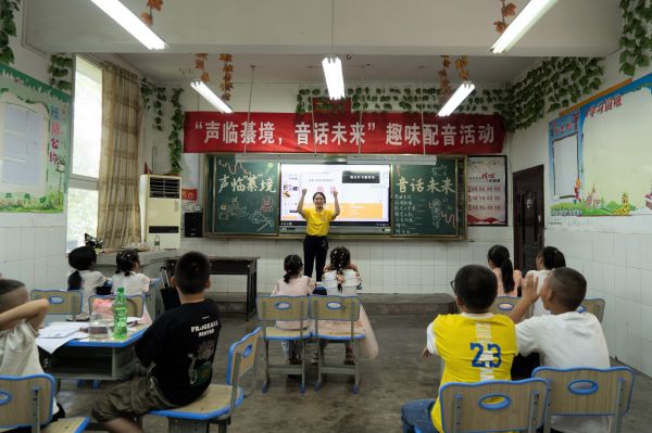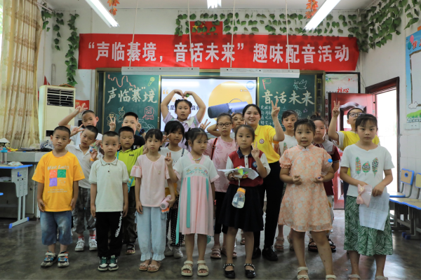 “配音要注意气息和节奏,尤其要将自己带入到情境之中,才能更好地把握角色”。实践团的郑义老师在讲台上讲解着配音要点,并借助优秀的配音视频案例,将小朋友们的眼睛牢牢吸引住。“哎!这位小朋友说得非常好,母语配音非常重要的一点就是要说好普通话,分清平翘舌、前后鼻音,我要奖励你一个小红旗。”郑老师适时提问,孩子们热情高涨,积极参与课堂互动。