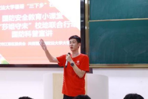 少年儿童是祖国的未来,是中华民族的希望。习近平总书记多次指出,培养好少年儿童是一项战略任务,事关长远。7月12日晚,西南政法大学“赓续红色基因,缅怀伟大聂帅”党史学习教育团在共青团重庆市江津区委员会的支持下,来到重庆市江津区支坪卫勤基地少年军校开展国防安全教育小课堂暨“莎姐守未”校地联合行动,通过“国防教育”“反间谍”“反诈骗”三个宣讲板块,开展了一堂别开生面的“莎姐守未”主题普法教育活动。