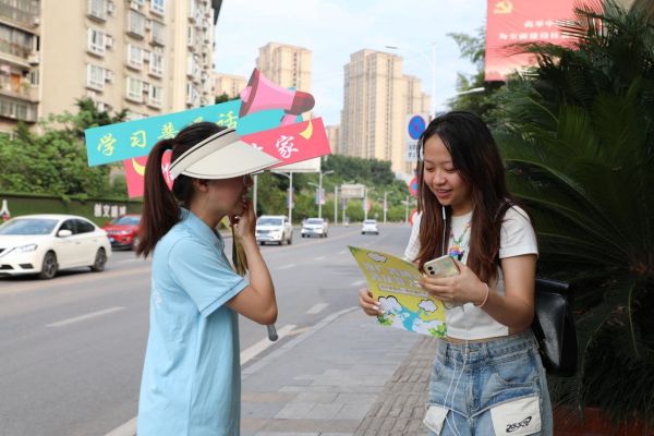 为激发广大居民对普通话的兴趣,宣讲团成员们通过走进超市、走进快递站、走进农贸市场、走进居民小区等方式向当地居民分发推普宣传单,广泛地为社区群众宣传普通话的内涵,让其初步了解推广普通话的意义。