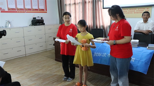 本次经典诵读活动的亮点在于“结对子”活动。在字词教学环节,队员们采取了趣味鼓励方式,引导小朋友们积极上台朗读,领取小奖品。在互动环节,由小朋友们挑选心仪的大学生“结对子”进行交流。随后,西南政法大学国际法学院吕亮书记为本次经典诵读活动作总结。她说,开展经典诵读活动,是期待“给孩子们的心灵种下爱的种子,带来成长的力量”。希望团队的大学生与孩子们建立起长期的学习帮扶机制。最后,吕亮书记与胡绵娓老师为孩子们赠送了精心准备的图书。