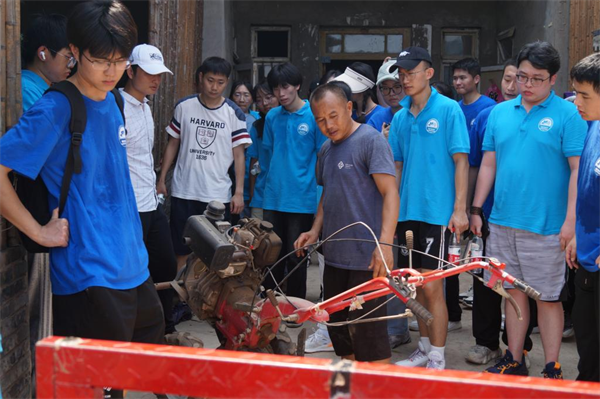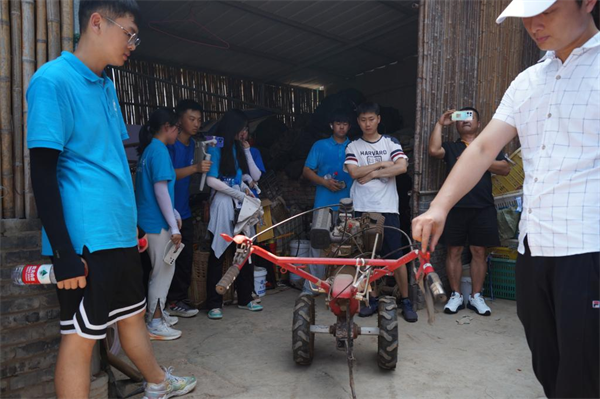 在街道党总支副书记廖俊沅的带领下,实践团队成员实地察看了当地地形地貌,了解农机具使用情况和农业机械化水平。随后,大家一起来到当地一户农民家中,对日常耕作使用机械包括耕地使用类、施肥除草使用类、收割使用类等农机具开展调研和可操作性维修,深入了解农民对农机具的需求,尤其是仿生类机械、生态修复类机械的需求情况,以及现行使用的农机具存在的不足,并结合实际从成本和功效两方面综合考虑,帮助农户制定更加科学和高性价比的农机维修和农机改良方案。
