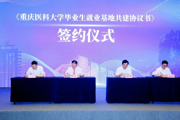 现场,许平与广安市人民医院、广安市中医医院、华蓥市人民医院、武胜县人民医院;重医附一院院长罗勇与岳池县人民医院、岳池县妇幼保健院、邻水县人民医院、邻水县中医医院签订《重庆医科大学毕业生就业基地共建协议书》。