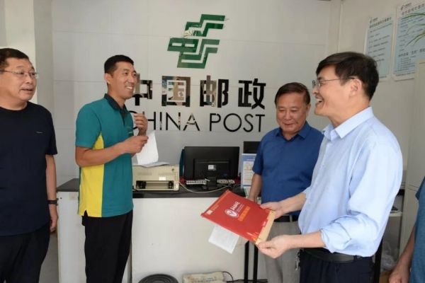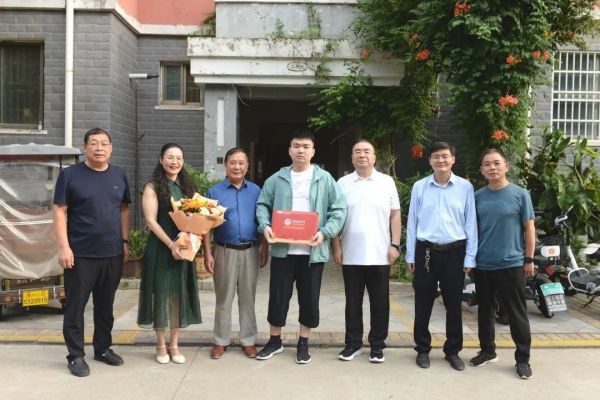 根据学校安排,河南校友会委托河南校友会周口分会会长陈东风、副会长李学功、秘书长李水安及校友冯玉东一行第一时间亲自去邮政部门领取通知书,并把通知书送至1991级校友陈瑞华、2023级新生陈昱全家中,与陈氏父子共话西政情怀,并与陈瑞华、陈昱全家人合影留念。