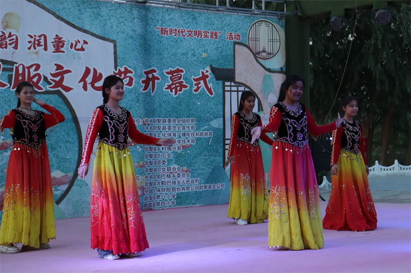 图为新疆科技学院同学在文化节上表演新疆维吾尔族特色舞蹈