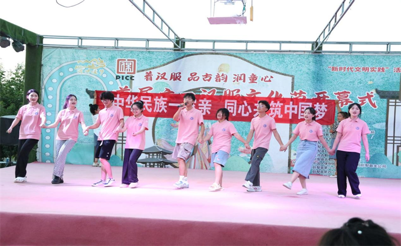 图为实践团成员在文化节开幕式上演唱川渝特色民歌