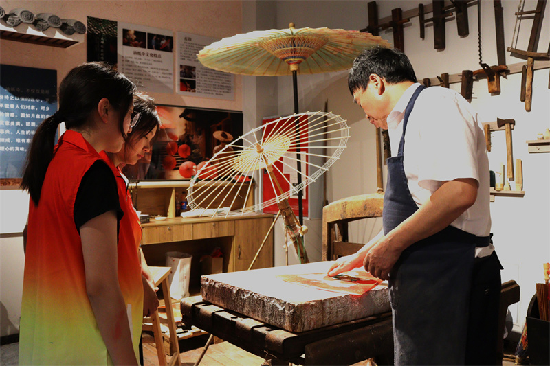 采访过后团队成员在参观分水伞里油纸伞博物馆时,欣赏了毕六福油纸伞中的代表性作品,进一步了解了油纸伞发展历程和制作工序,领略到了中华民族优秀“非遗”传统文化之美。