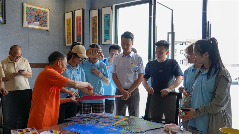 7月10日下午,实践团走进忠县磨子乡土家族农民画室,调研“特色文化引领兴村富民,文化创新助推乡村振兴”。一幅幅构图饱满、色彩鲜艳的乡土农民画,让人目不暇接。家乡发展变迁、民俗风貌、渔舟唱晚、用色大胆红绿相间的果园……这些都出自本地土家族农民之手,他们用画笔见证乡村美丽蝶变,将丰富的农民生活通过艺术形式展现。
