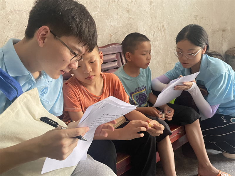 7月11日,实践团深入石梯村了解脱贫户当前的问题和需求,调查乡村儿童心理健康与课外活动的情况。