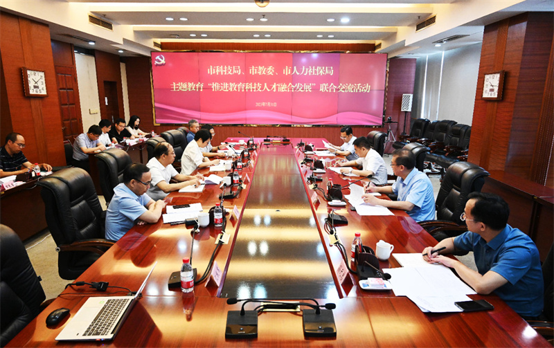 7月31日,重庆市教委、市科技局、市人力社保局联合开展主题教育交流活动。市委教育工委书记、市教委主任刘宴兵,市人力社保局党组书记、局长黎勇出席活动并作交流发言,市科技局党委书记、局长明炬主持会议。