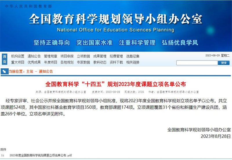 8月28日,全国教育科学规划领导小组办公室公布了全国教育科学“十四五”规划2023年度课题立项名单。重庆对外经贸学院主持的《西部农村教师在地化成长的数字赋能机制研究》课题获批国家社科基金教育学项目,教育科研工作取得重要历史性突破!