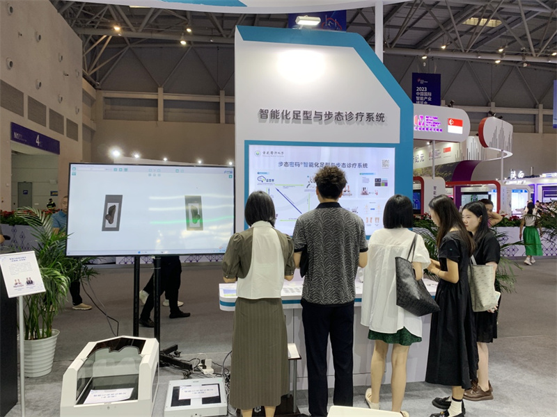 其中,能够近距离体验的智能化足型与步态诊疗系统引来参展观众纷纷试用,广受好评。通过自主研发的足踝-步态四维传感检测仪和三维足部扫描仪采集数据上传至上位机软件分析和云数据库储存,云端形成报告下传终端,专利3D打印技术形成3D打印产品,最后形成快速、便捷、线上解决方案。