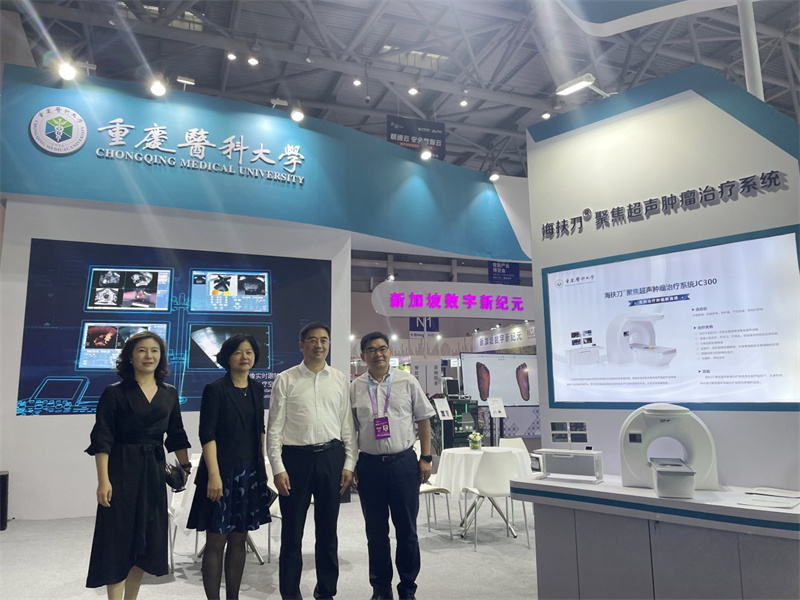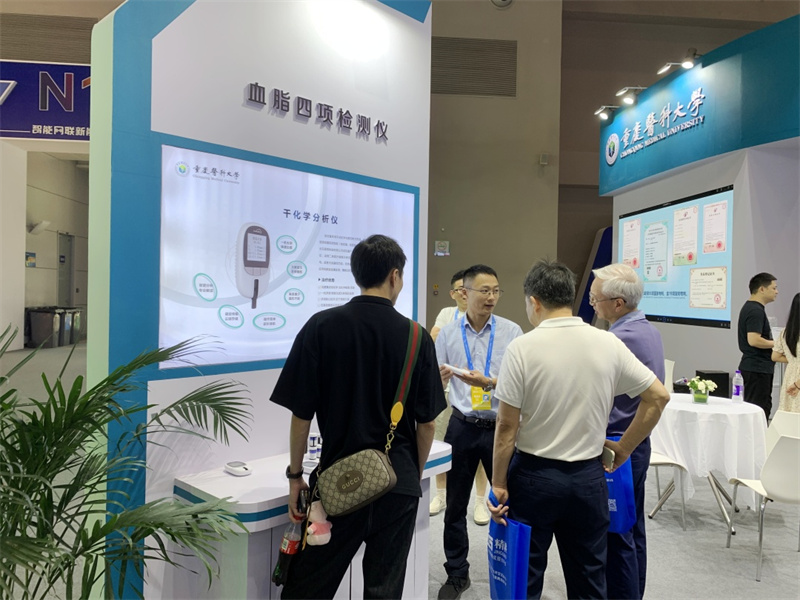 现场设置了“综合展区、专业展区和区域合作展区”3个展区,重庆医科大学作为区域合作展区的高校之一,集中展示了海扶刀聚焦超声肿瘤治疗系统、新冠病毒(2019-nCoV)抗原检测试剂盒(胶体金法)、智能化足型与步态诊疗系统、全植入人工听觉装置、穿戴式救训心肺复苏辅助仪、气道打开体位自动调节装置、血脂四项检测仪7项具有创新型、前沿性、科学性的科技创新成果,吸引了不少专业观众和社会观众的目光。