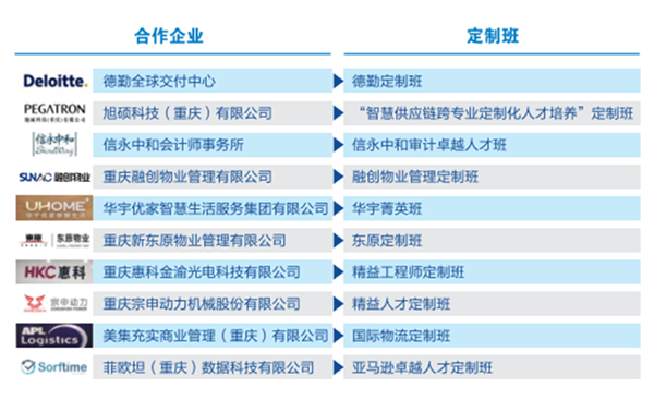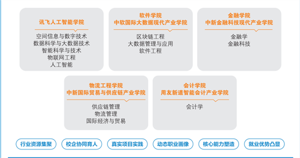 在校企合作方面,该校汇聚了科大讯飞、中软国际、用友新道、京东、龙湖、德勤等行业龙头企业,积极开展企业培训、校企招聘、校企合作等活动,促进资源共建共享平台建设,形成产业学院矩阵,组建跨学科专业产业人才定制班,合作企业达到上百家。