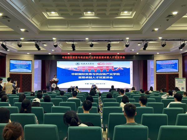 9月15日上午,重庆财经学院中新国际贸易与供应链产业学院首期卓越人才班宣讲会在学术报告厅顺利举行。中新互联互通(重庆)物流发展有限公司副总经理陈晞、物流部经理郭娜、企划部陈恋恋,重庆财经学院校长助理张立、物流工程学院院长刘岱、党总支副书记王艺燃、副院长陈郑霖、物流工程学院专职教师,经济学院专职教师以及2020级物流管理、国际贸易等专业的学生参加宣讲会。