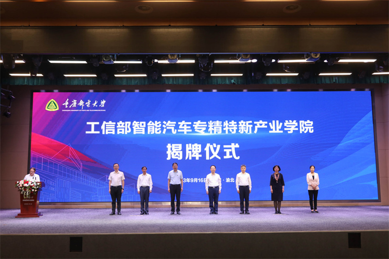 2023年9月16日,工信部智能汽车专精特新产业学院揭牌仪式暨重庆邮电大学现代产业学院2023级新生开学典礼在渝北区仙桃数据谷举行。