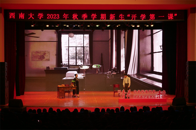 此次西南大学“开学第一课”创新采用舞台剧、音视频、主题演讲等形式,从致历史、致青春、致未来三个维度,新颖且生动的向初入大学的青年学子们敞开校园、指引前路,帮助新生感悟校史底蕴,厚植家国情怀,砥砺强国志向。