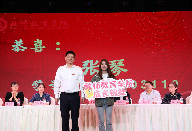 来自2023级小学教育(全科教师)1班的张琴成为现场最大赢家,抽取到了当场最大礼包——教院锦鲤。来自2023及戏剧教育班的张琴抽取到了生涯导师成长锦囊。他们均表示要努力学习,今后争做一名优秀教师,不辜负学院的精心栽培。