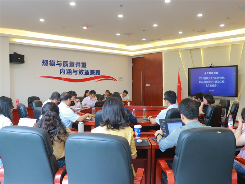 2023年9月28日,重庆财经学院召开2023届毕业生就业工作阶段总结暨2024届毕业生就业工作9月推进会,传达学习就业工作政策,深入分析学校就业工作情况,研究部署有关工作。会议由党委副书记房朝君主持,校长吴华安、党委书记张毅、校长助理崔中山出席会议并讲话。