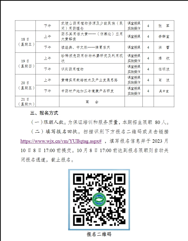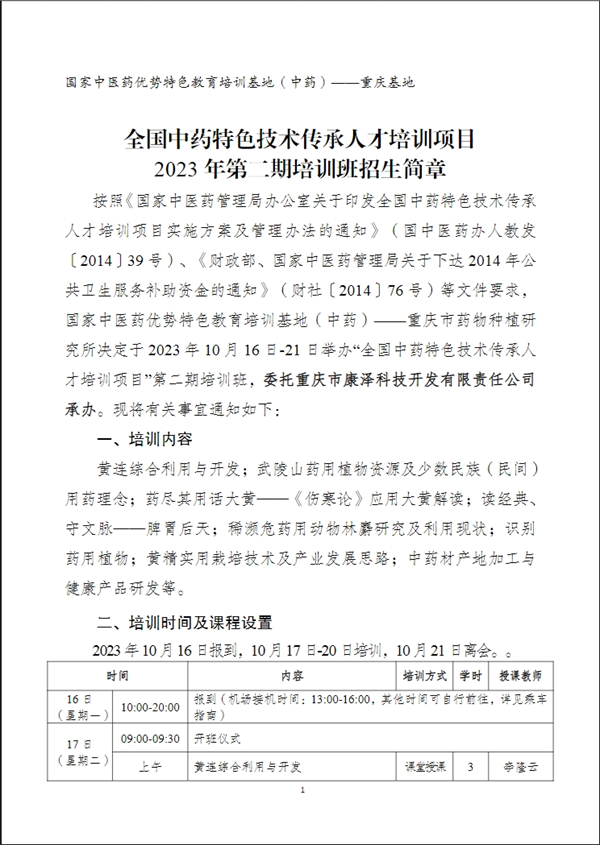 重庆中医药学院全国中药特色技术传承人才培训项目2023 年第二期培训班招生简章