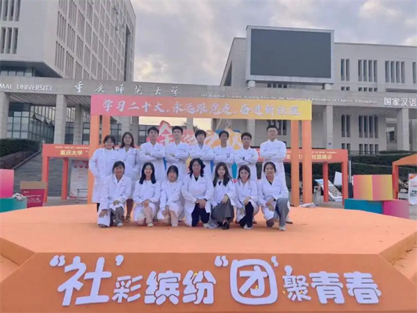 10月15日,2023年“金色之秋”川渝大中专学生社团文化节开幕式暨“‘社’彩缤纷‘团’聚青春”社团嘉年华在重庆师范大学举行,重庆中医药学院中医药文化传播社作为“社龄”最小的一支志愿公益类社团参加了本次活动,受到了活动现场广大同学的热烈欢迎,成功“出圈”。
