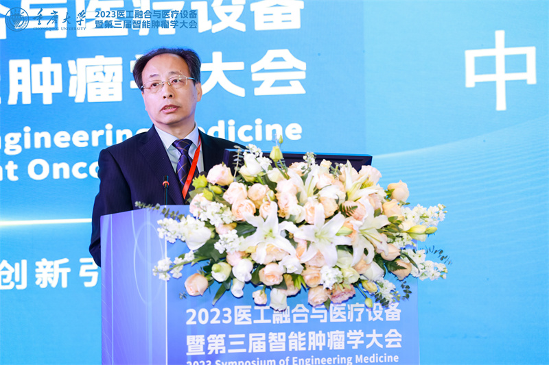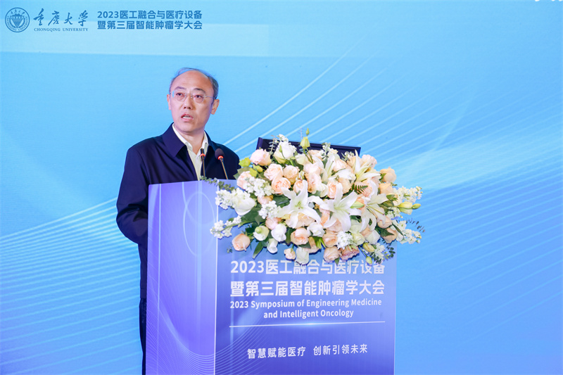 开幕式上,中国工程院院士、重庆大学校长王树新向大会致辞。他表示,当前,以人工智能为代表的新一轮科技革命和产业革新加速演进,一系列前沿工程技术发展日新月异。在大健康产业新赛道智慧医疗领域,医工融合是引领人类健康领域创新式发展的重要模式,也是当今科技创新的重要领域。近年来,重庆大学充分发挥高水平研究型综合性大学优势,以医工融合为切入点,加快推动大健康学科布局建设,瞄准医学学科国际前沿,全面开展多学科交叉融合,在国际上首次提出了以人工智能与肿瘤学交叉学科为基础的智能肿瘤学,为人类生命健康贡献“重大智慧”。