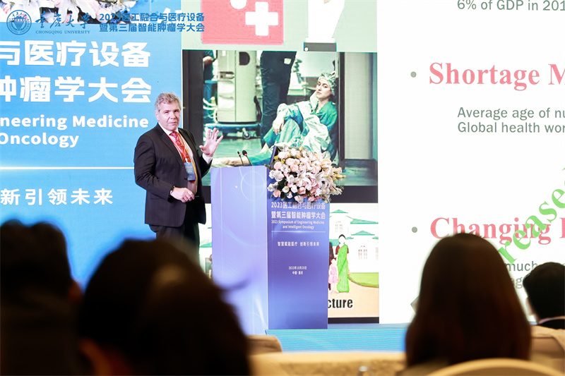 10月20日,由重庆大学主办的“2023医工融合与医疗设备暨第三届智能肿瘤学大会”在重庆两江新区举行。来自中国、英国、加拿大、德国等国家和地区的十余位知名院士、专家齐聚一堂,就医学诊疗数字化发展及智能肿瘤领域新兴技术进行深度研讨。