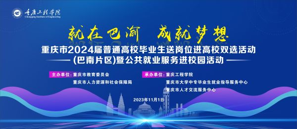 为深入学习贯彻党的二十大精神,落实党中央、国务院关于高校毕业生就业的相关决策部署,抢抓秋招黄金期,充分搭建毕业生和用人单位交流平台,全力促进高校毕业生高质量充分就业。11月1日,重庆市2024届普通高校毕业生送岗位进高校双选活动(巴南片区)暨公共就业服务进校园活动在重庆工程学院顺利举行。本次活动由重庆市教育委员会、重庆市人力资源和社会保障局主办,重庆工程学院、重庆市大学中专毕业生就业指导服务中心、重庆市人才交流服务中心联合承办。