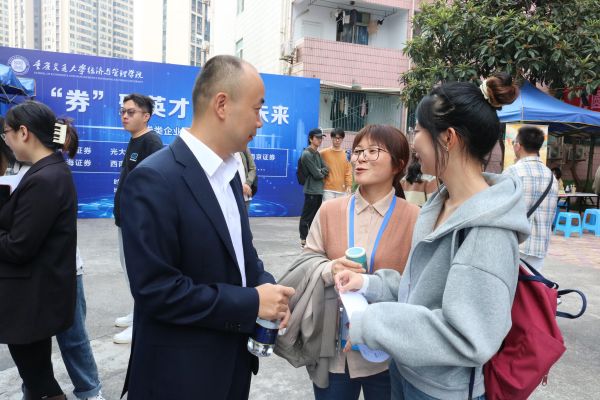 经济学专业2003级校友张涛就职于国泰君安证券公司,在洽谈毕业生招聘时,与辅导员一拍即合,应邀参与“红路驿站”的就业指导,分享自己的求学、职场经验,介绍证券行业的发展现状和趋势、岗位及职业发展需要等情况,并对同学们的择业定位、应聘准备、入职能力素质要求等进行一对一指导,还积极协同经管学院举办“‘券’聚英才,共创未来”证券类企业专场招聘活动,率队来校选聘毕业生。