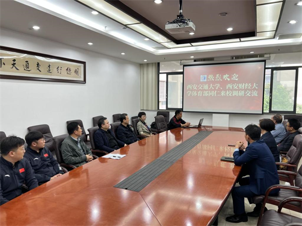 西安交通大学体育中心党委书记冯大鹏、主任刘长江、副主任孙蔚以及西安财经大学体育部主任郭志勇等一行6人,于2023年11月3日至5日到访重庆交通大学体育部,就公共体育教学运行管理、科研及学科建设等方面的经验进行考察走访交流。重庆交通大学体育部党总支书记、主任隆承宏,正处级组织员梁德全,体育部办公室主任周菲菲,教学办主任蒋臻,体育部竞技体育办公室主任王勇勇等有关负责人参加了座谈会。座谈会由隆承宏主持。