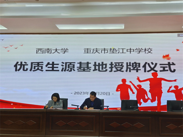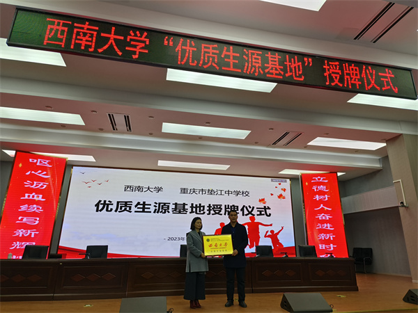 活动现场,西南大学与重庆市垫江中学还进行了“优质生源基地”授牌仪式及签约仪式。