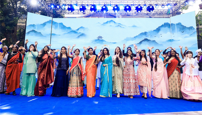 嘉年华开幕式在饱含青春时尚活力的国际服装秀中拉开帷幕。中国的汉服、印度的纱丽、摩洛哥的卡夫坦长袍、印度尼西亚的巴迪克……成渝高校中外青年学生以各国特色传统服饰作为通用语言,展示了传统文化与现代潮流的碰撞之美。