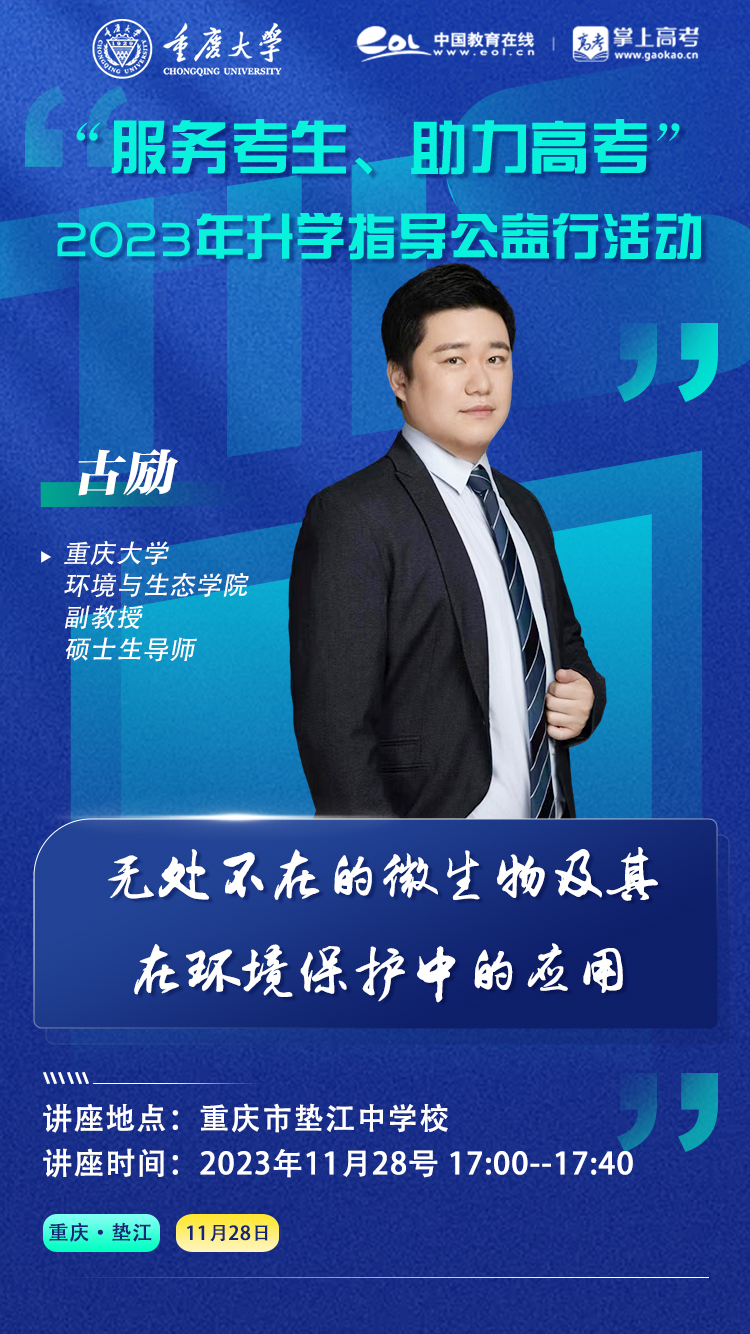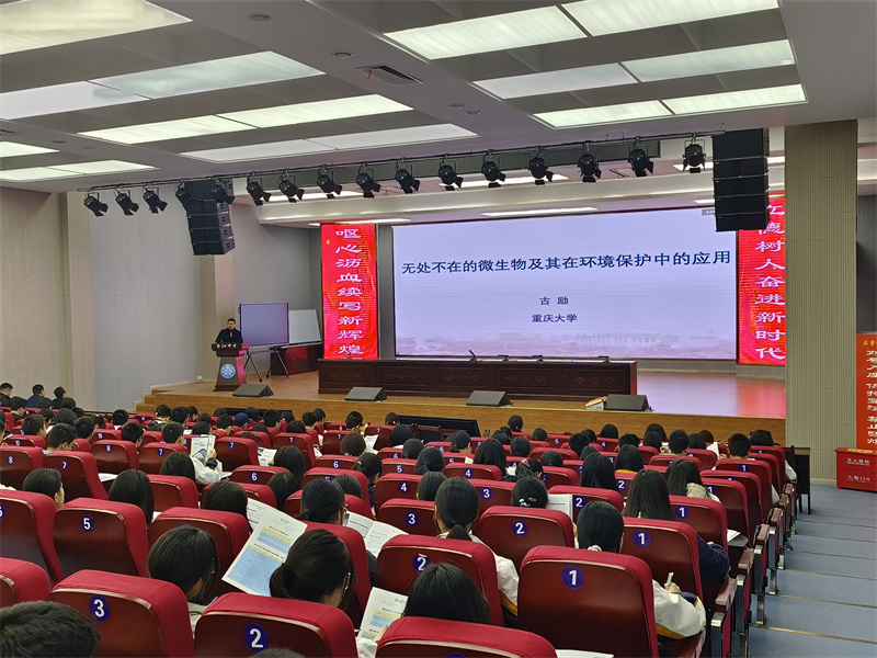 11月28日下午,重庆大学环境与生态学院副教授、硕士生导师古励来到重庆市垫江中学学术报告厅,为同学们带来一场“无处不在的微生物及其在环境保护中的应用”的科普讲座。