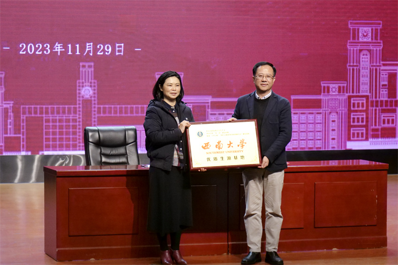 活动伊始,西南大学向重庆市杨家坪中学授“优质生源基地”牌。