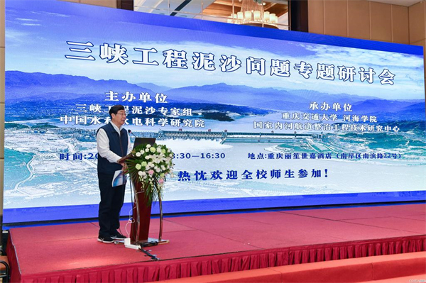 2023年11月28日,由三峡工程泥沙专家组、中国水利水电科学研究院主办,重庆交通大学河海学院、国家内河航道整治工程技术研究中心承办的三峡工程泥沙问题专题研讨会在渝召开。水利部三峡工程管理司一级巡视员张云昌,中国工程院院士、三峡工程泥沙专家组组长胡春宏,清华大学王桂仙教授,武汉大学李义天教授,长江水利委员会水文局王俊教授、长江航道局刘怀汉正高级工程师,南京水利科学研究院窦希萍正高级工程师,四川大学刘兴年教授,以及来自中国长江三峡集团有限公司、中国水利水电科学研究院、河海大学、重庆交通大学等国内相关高校与科研机构的百余名专家学者参加了研讨会。会议由中国工程院院士、三峡工程泥沙专家组组长胡春宏主持。