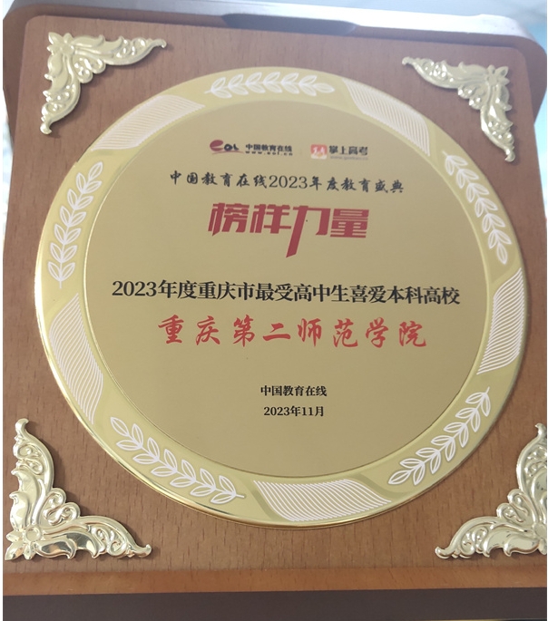 近日,必威体育登录网址 “榜样力量·2023年度教育盛典”评选获奖名单揭晓,重庆第二师范学院凭借卓越的品牌影响力和办校实力,深厚的学术积淀,荣获“2023年度重庆市最受高中生喜爱本科高校”的称号。