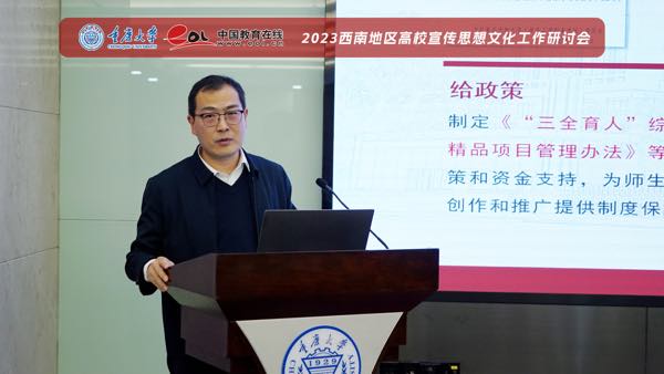 12月6日下午,2023西南地区高校宣传思想文化研讨会在重庆大学召开,来自重庆大学、电子科技大学、西南大学、贵州大学等50余所高校的近百位宣传文化战线的负责人参会,共同深入学习贯彻习近平文化思想,研讨高校校园文化提质增效。