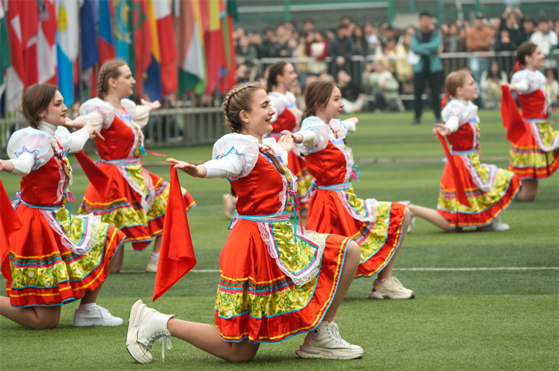 12月10日下午,以“丝路筑梦 五洲同行”为主题的西南大学第十六届国际文化节在该校第四运动场上拉开帷幕,来自100多个国家和地区的上千名留学生参加了本次国际文化盛典。