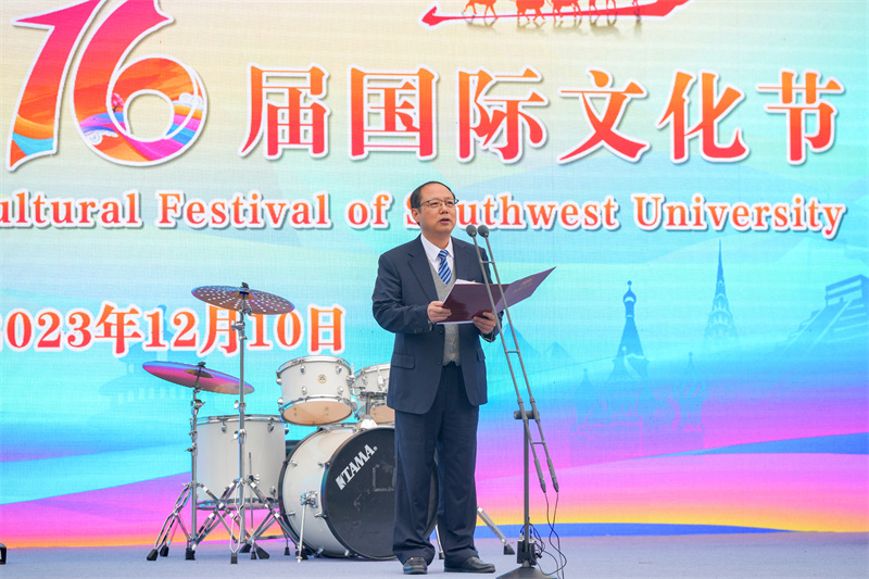 西南大学副校长周光明在开幕辞中表示,国际文化节是学校一年一度的国际文化交流盛会,今年恰逢提出共建“一带一路”倡议十周年,以“丝路筑梦 五洲同行”为主题的文化节更是别具意义。