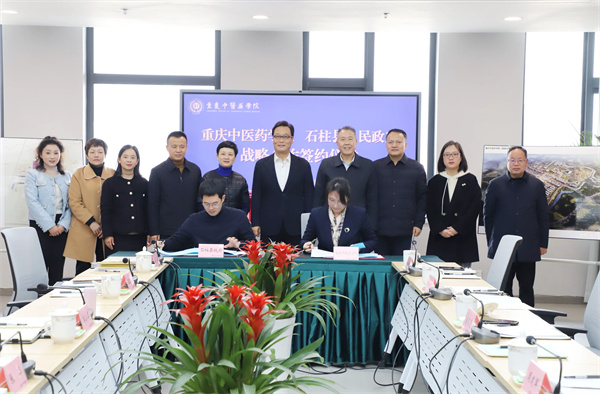 12月8日,重庆中医药学院与石柱县人民政府签订战略合作协议。石柱县县委书记张华,县委副书记、县长郭小萍,重庆中医药学院党委书记、院长周建军,党委副书记王勇德,党委委员、副院长唐丽灵及相关职能部门负责人参加签约仪式。