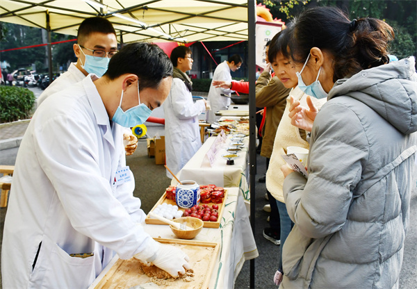 12月6日,重庆中医药学院第一临床学院(重庆市中医院)2023年中医药文化节成功举办。知名专家大型义诊、膏方文化展示、中医药健康知识培训、传统中药炮制技艺展示、特色医院制剂展示、中药谜语文化互动……中医药文化以有形、有趣、有用、好看的多彩形式走出医院,走出药房,走到老百姓的身边,让市民真切感受中医药的奇妙之处。