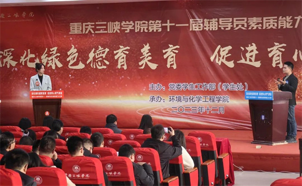 12月6日下午,重庆三峡学院第十一届辅导员素质能力大赛决赛在明辨楼2栋104报告厅举行,党政办副主任罗仁贵、组织部副部长黄琰、人事处副处长郭兰、教务处副处长秦刚和重庆市辅导员素质能力大赛高职高专组特等奖获得者张艳应邀担任评委,学校党委书记李廷勇出席并讲话。