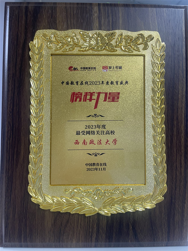 近日,必威体育登录网址 “榜样力量·2023年度研究生教育评选盛典”评选获奖名单揭晓,西南政法大学荣获“2023年度最受网络关注高校”奖项。