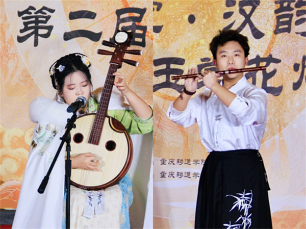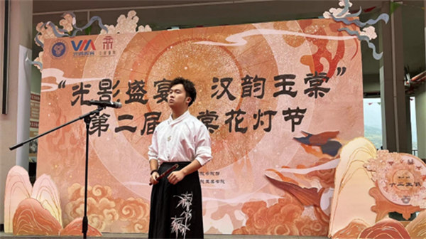 活动伊始,随着《霍元甲》旋律的奏响,杨小彦等六位校武术队成员在刀光剑影中闪亮登场。高山流水,步步生风,一段南拳开场,展现一派浩然气象;枪如云,气势如虹;刀破风,志厉青云。一程鼓息奏,一曲笛声扬。竹笛独奏《打上花火》,是民乐与现代曲乐的碰撞,表演者灵活的手指在笛孔上跳跃,随着音乐的起伏,仿佛看到一朵朵绚烂的花火在夜空中绽放。一曲《金蛇狂舞》,是竹笛和中阮的完美融合,将现场的氛围从悠扬推向高潮。