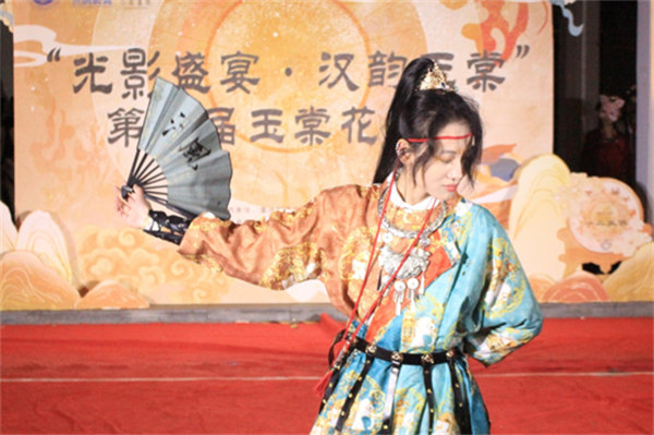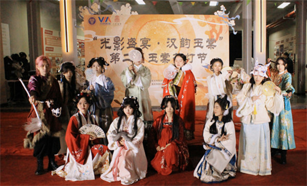 同时本次活动有幸邀请到李怡等十二位来自重庆外语外事学院云琦汉文化社团的生肖代言人,她们步履轻盈,款款走来,身穿不同形制的汉服:唐代圆领袍、宋制百迭裙、明制马面裙……分别佩戴十二生肖的面具依次走上舞台,或挽剑提枪,或翩翩起舞,展现出生肖祥瑞的气韵。
